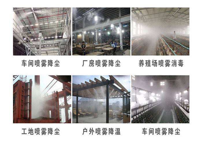 1.车间降尘——对于水泥、矿厂和煤场等各类粉尘污染严重的工厂,既可以做到有效的抑制空气中的扬尘,又不会让车间地面有积水,做到真正意义上的干雾抑尘。
